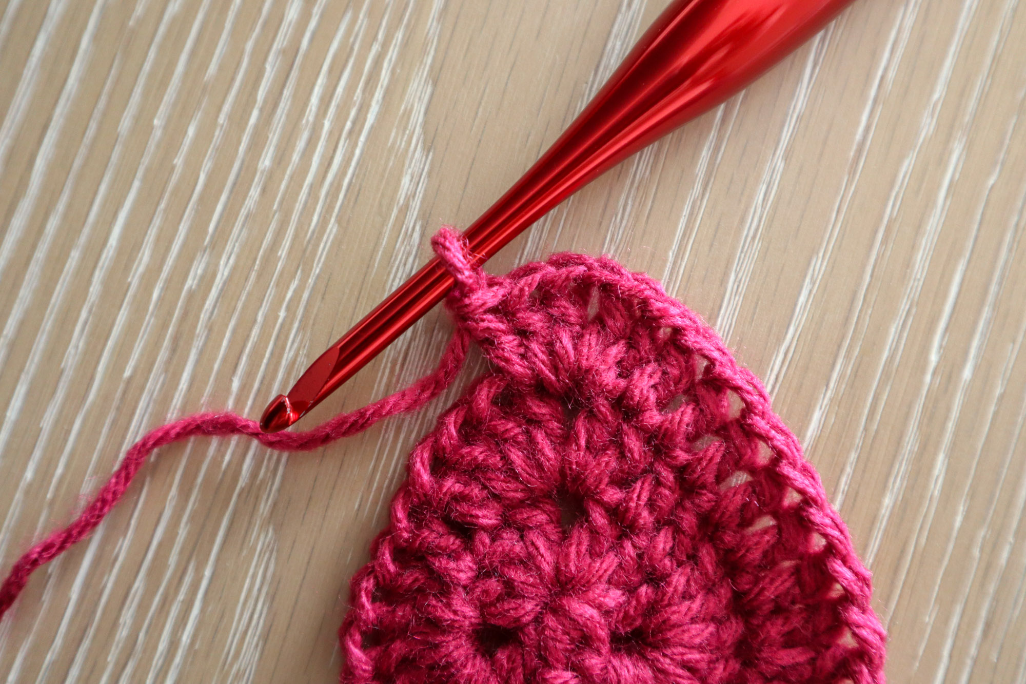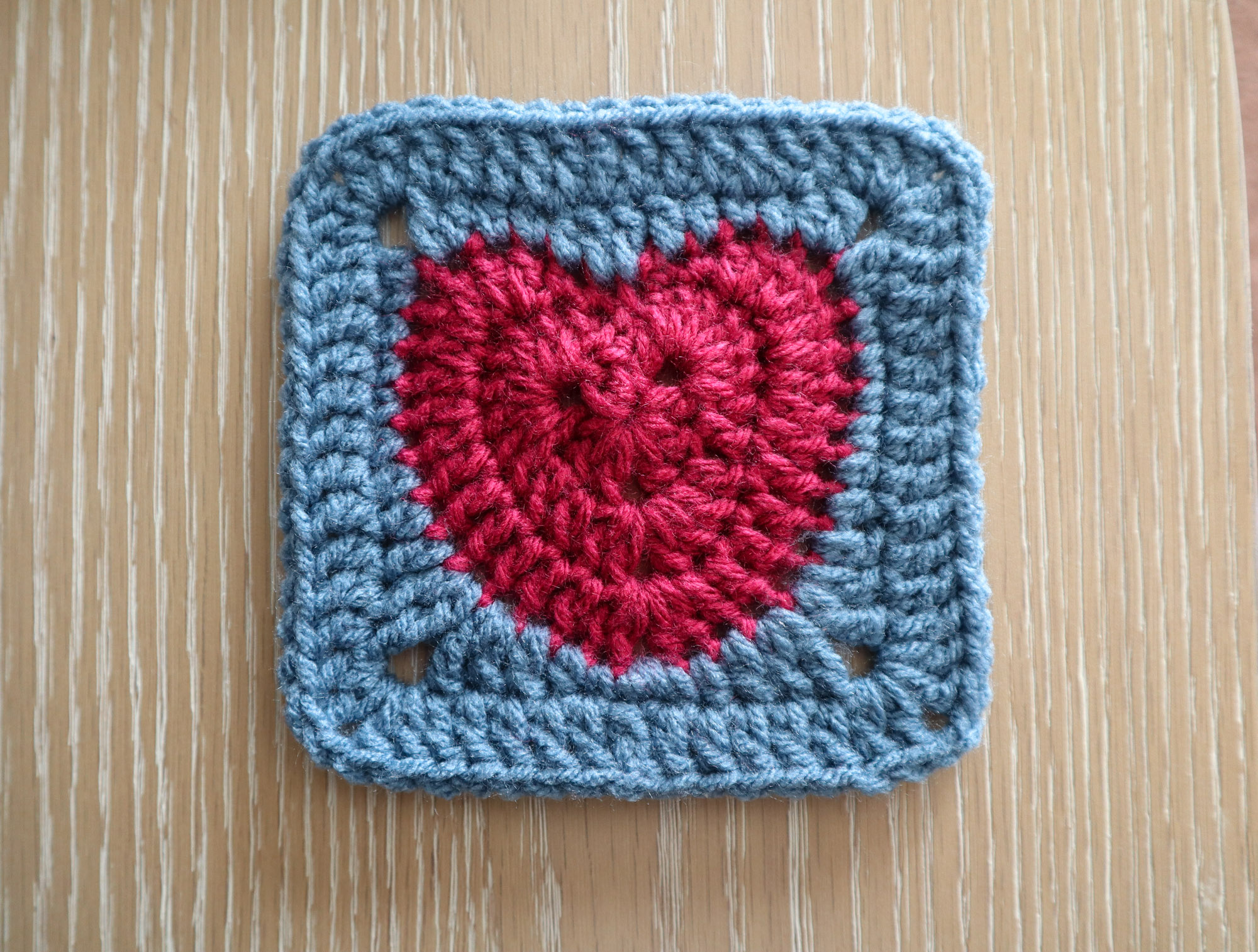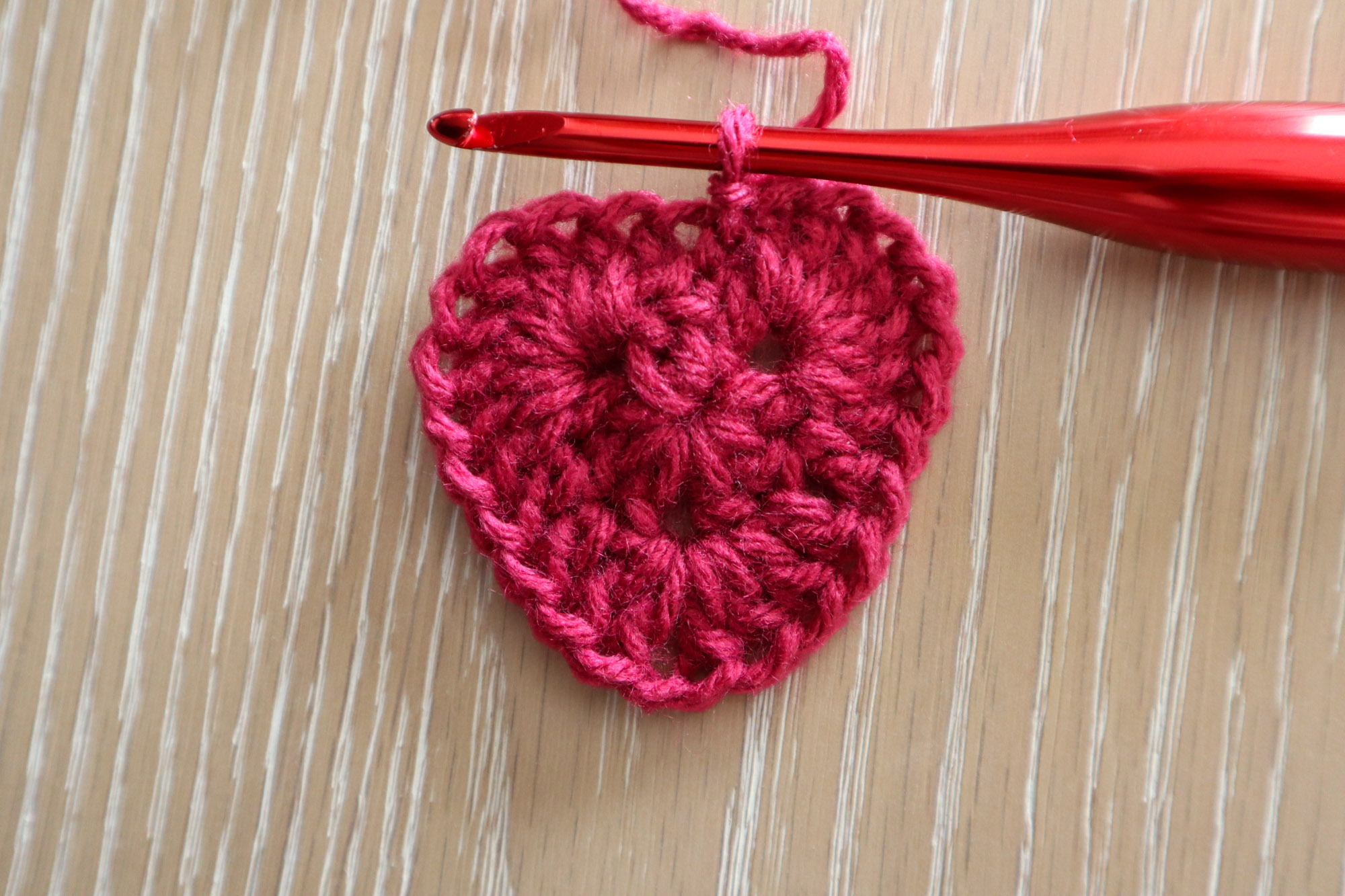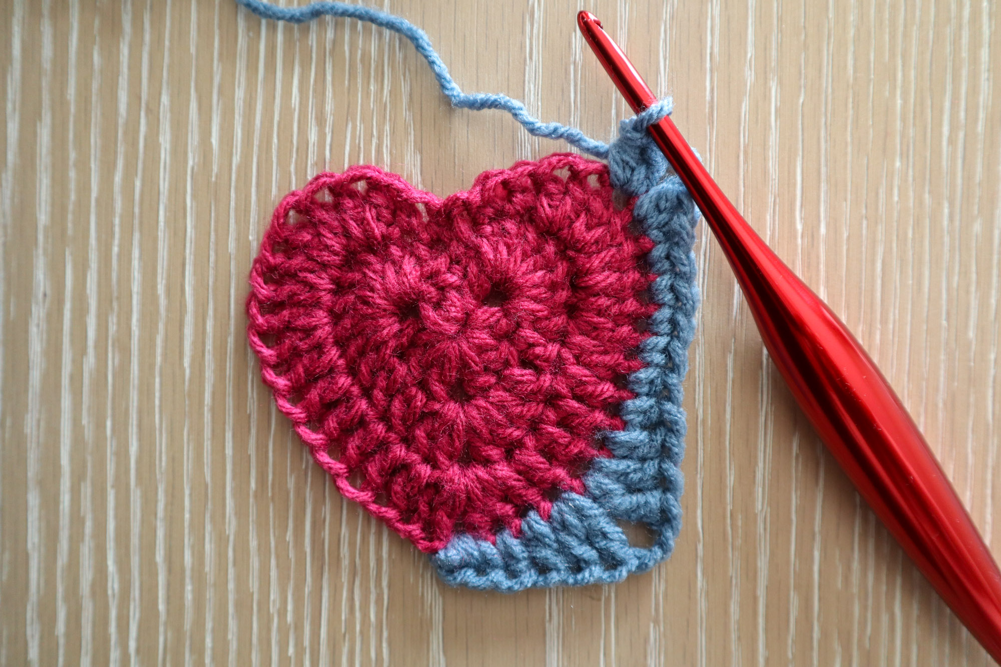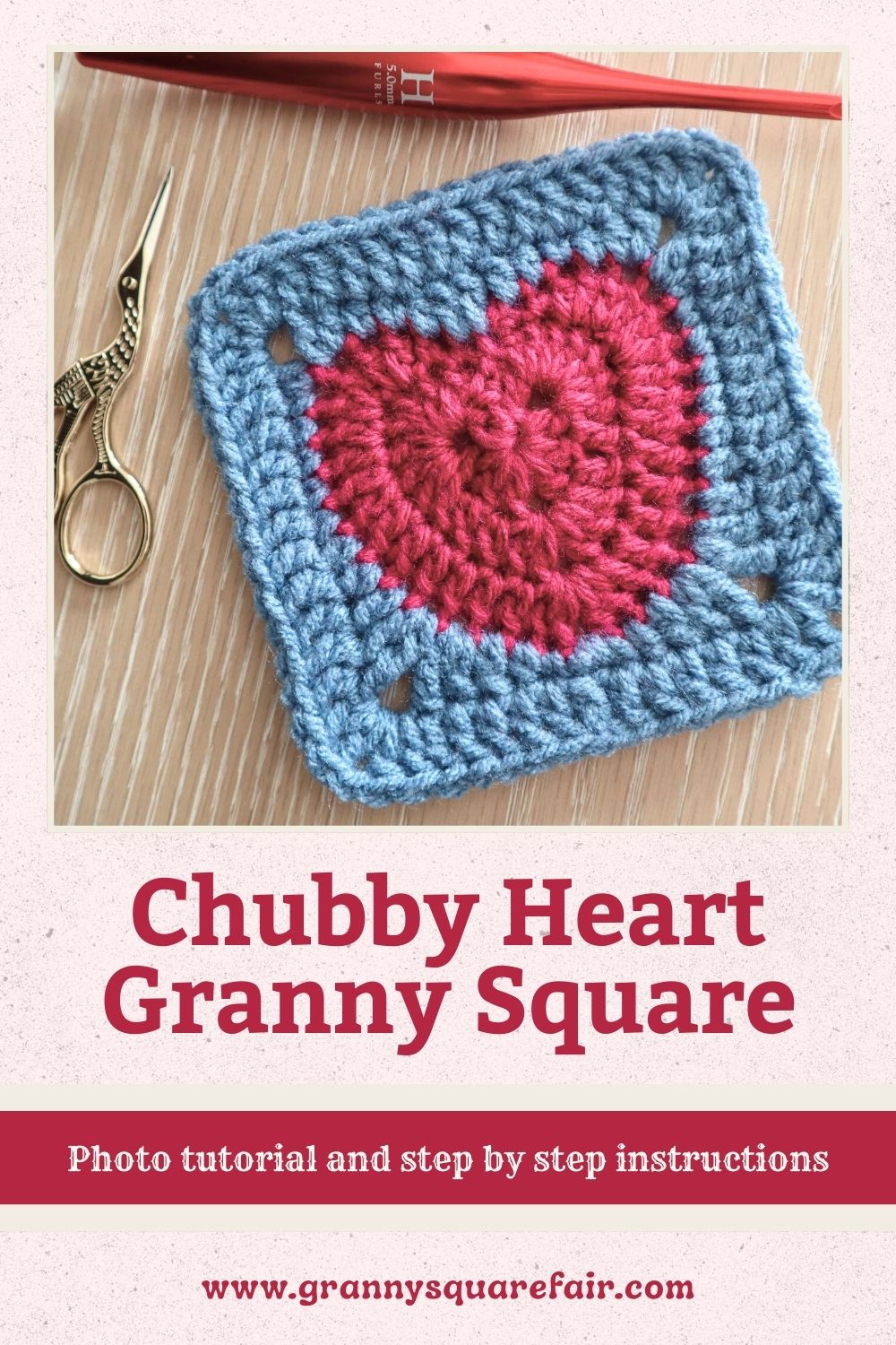 There’s definitely more than one way to make a granny square heart! With this variation, you get a solid granny square with a large, chubby, heart motif in the middle that is worked from the center-out.