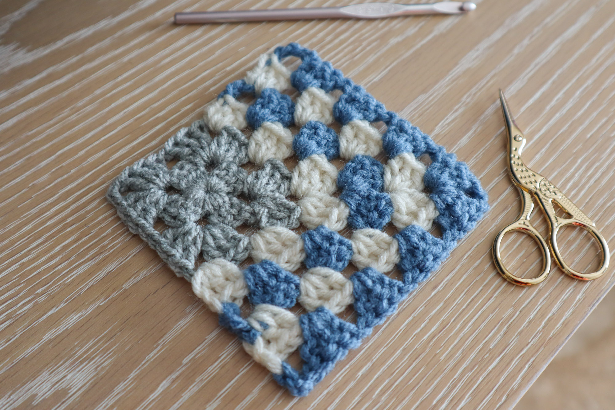 - We’ll make a small basic granny square and then build rows off of it in a “mitered corner” style. This method can be followed for any size granny square by adding rows and rounds as desired.