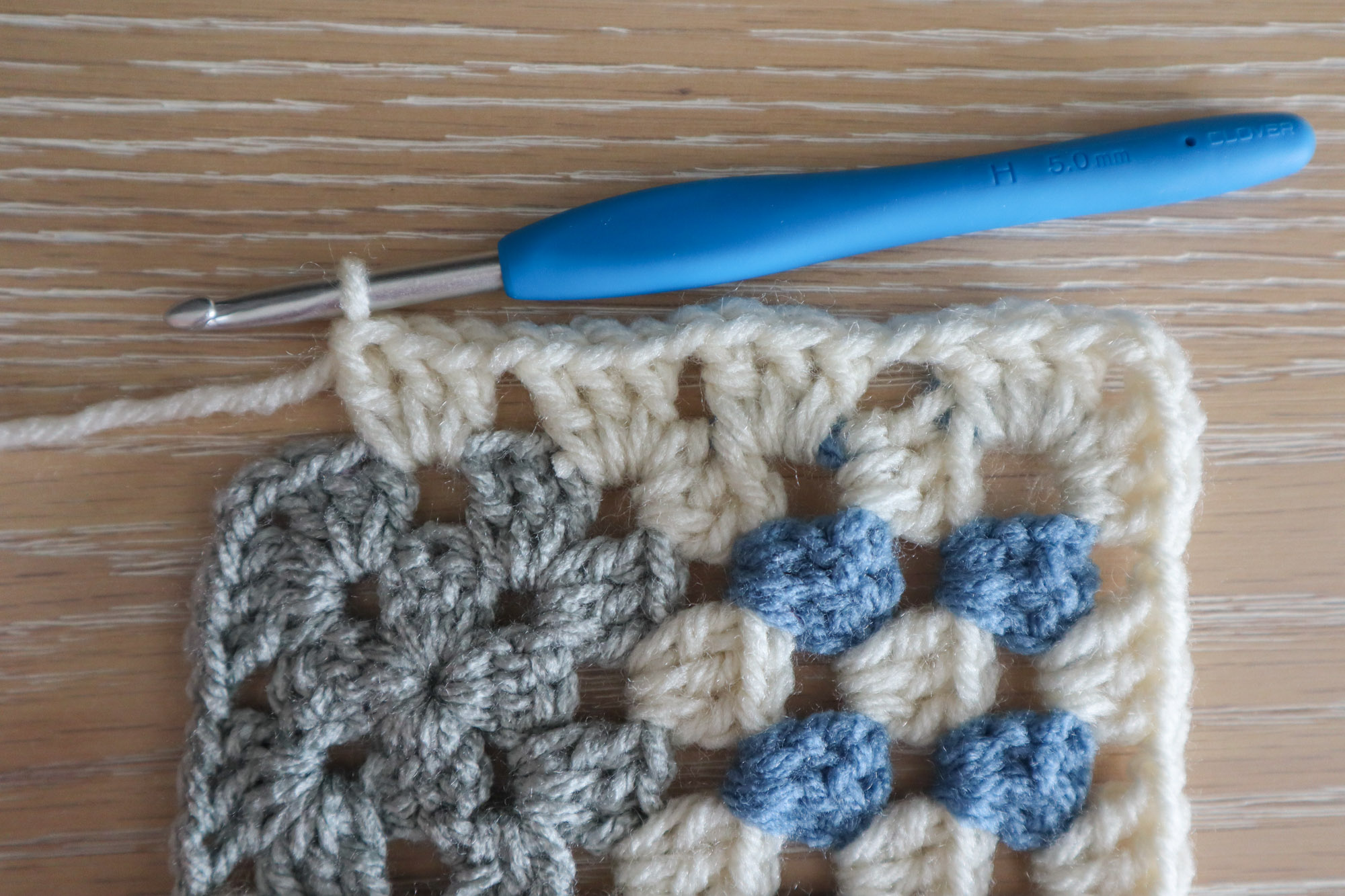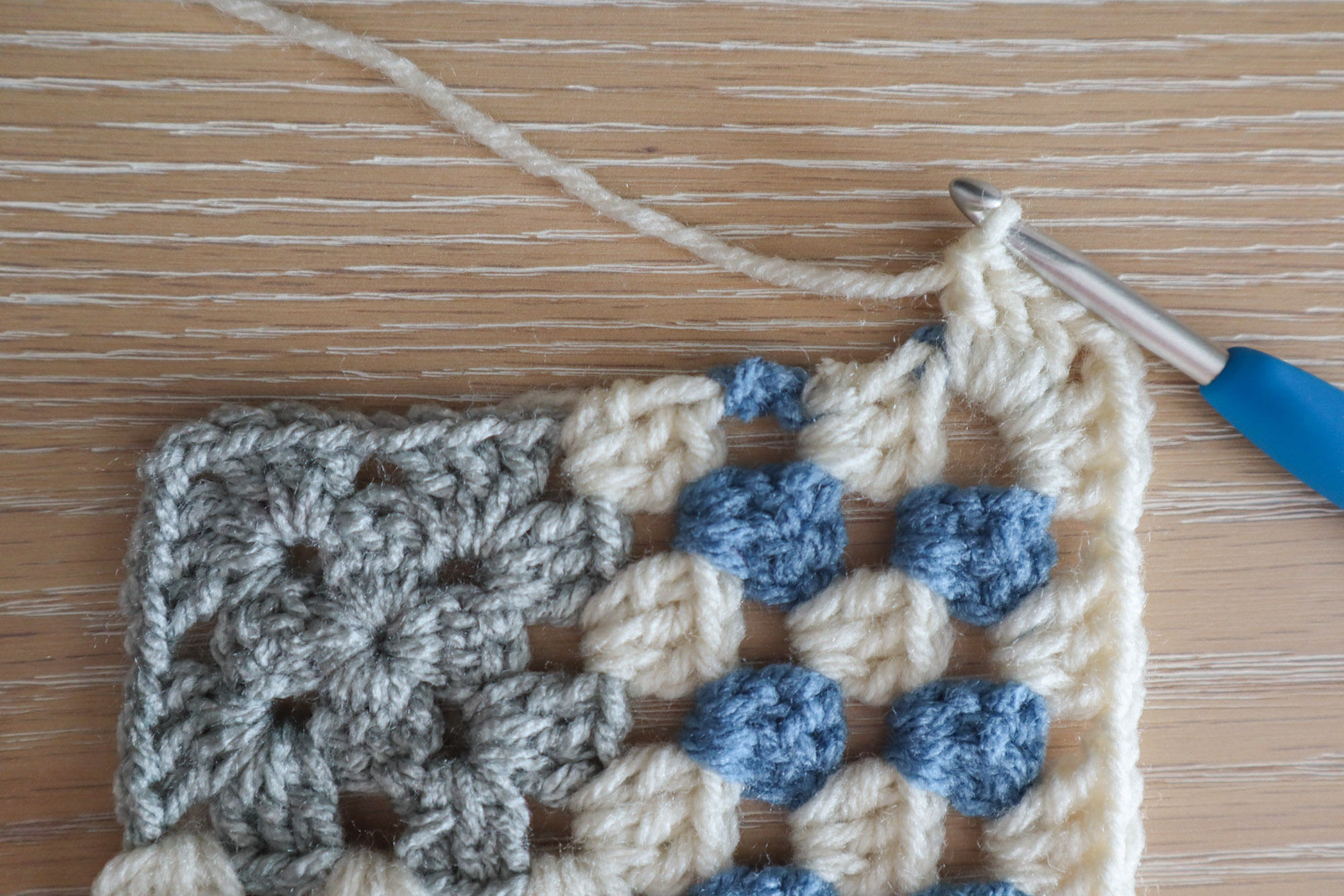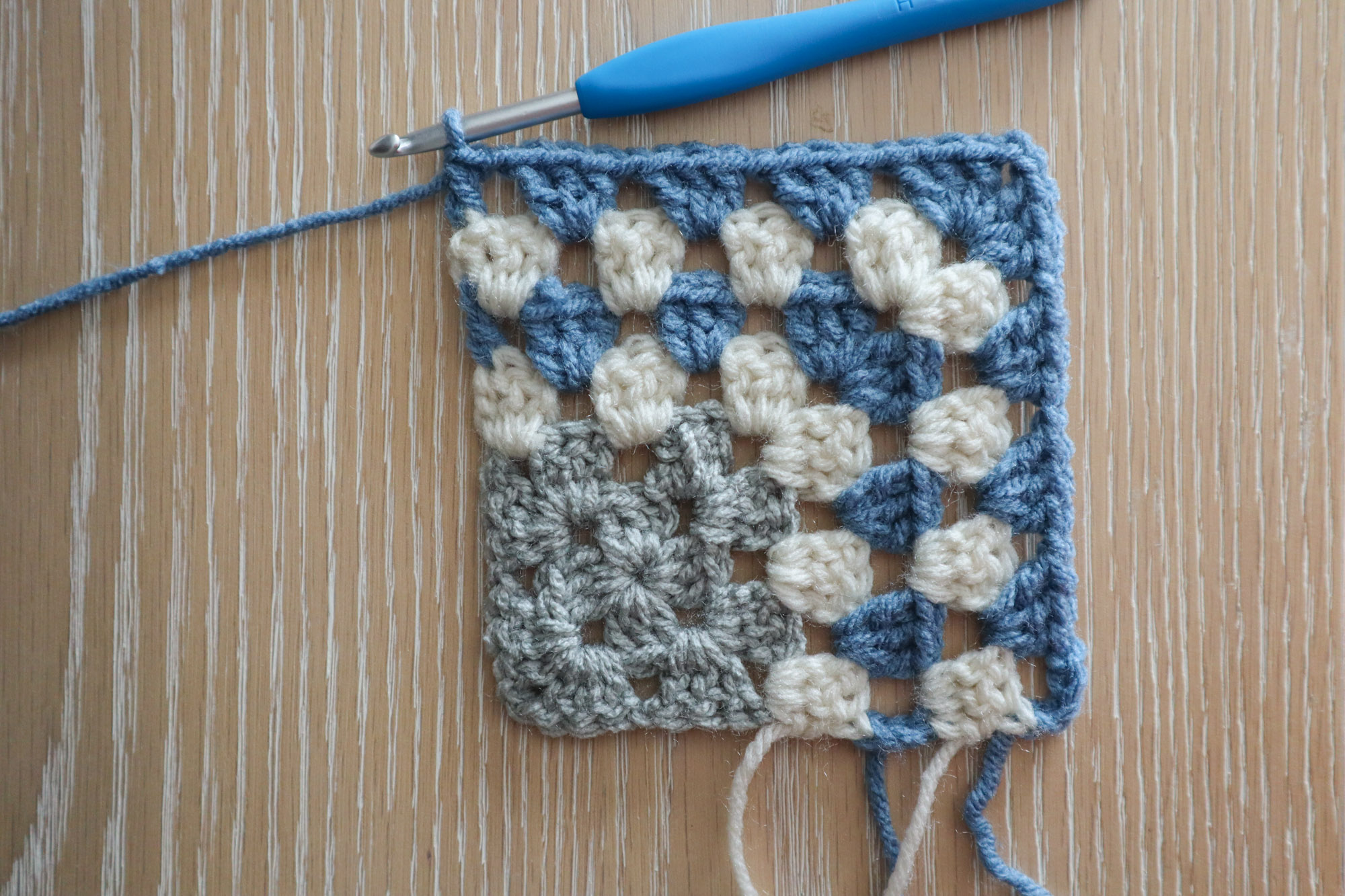 Continue repeating row 2 and row 3 until your square is as large as you’d like.