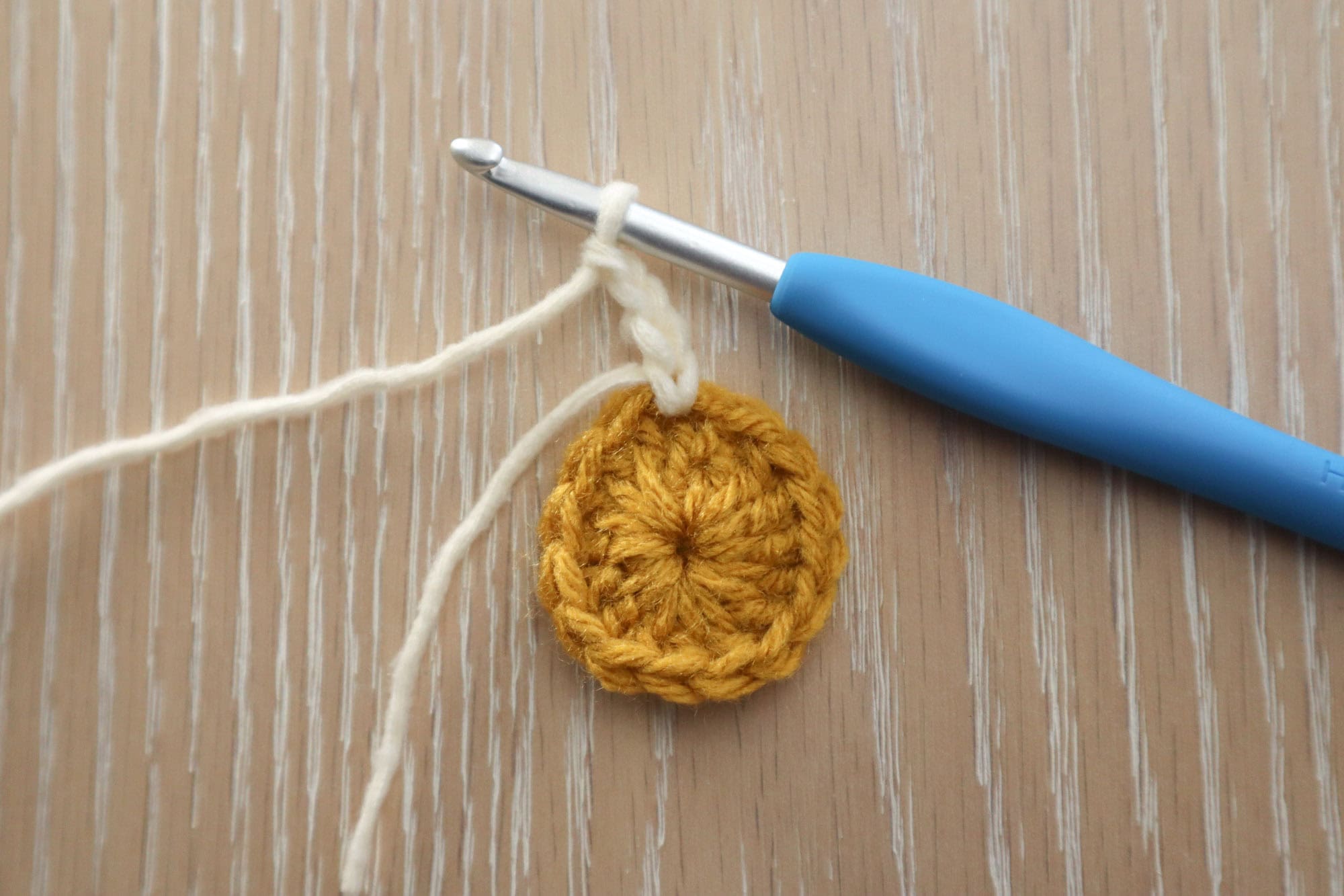 • Starting chains will mostly count as stitches in this pattern. We’ll clarify in the instructions at the beginning of each round.
