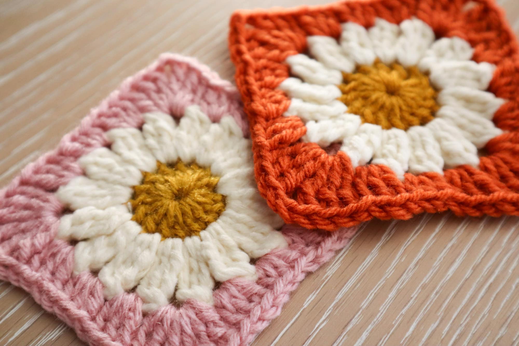 This simple daisy granny square is an adorable springy/summery addition to your next crochet project! Try experimenting with different petal and flower center colors to put your own spin on it! This is a quick and versatile granny square that is sure to impress!