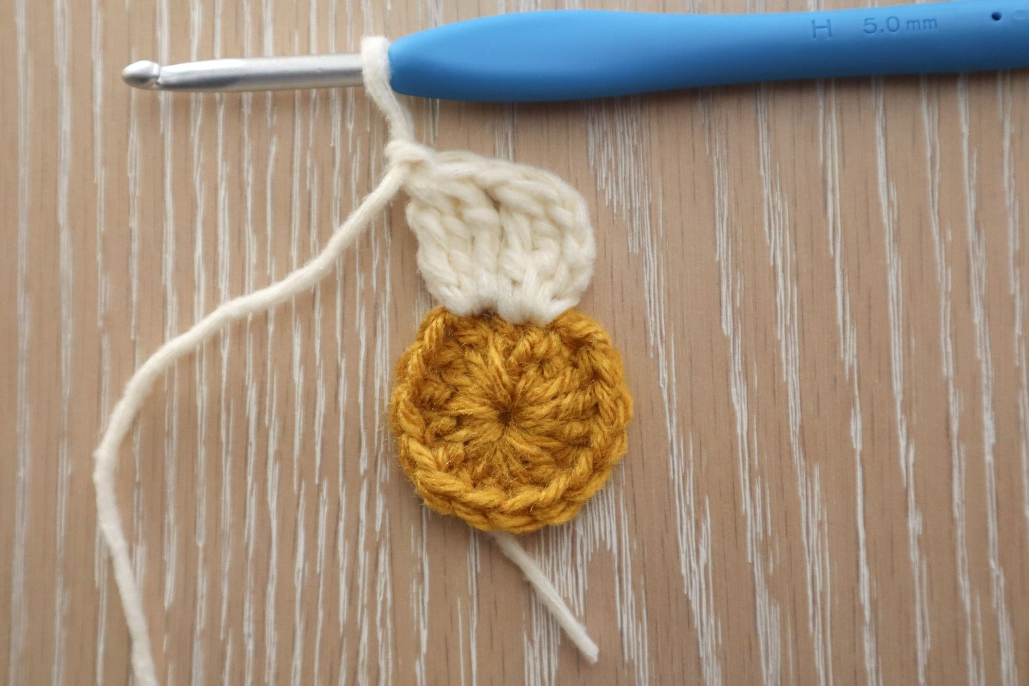 • Hook: Use a hook that matches your yarn label’s recommendation. I used a 5 mm hook.