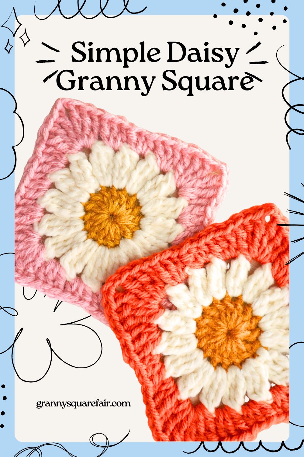 Of all of the flower inspired granny squares out there, this one might just be the simplest! The simple daisy granny square is clean, classic, and endlessly charming, giving you that fresh-picked daisy look in only 3 rounds. It’s the kind of square that works beautifully on its own or as part of a larger project, and its petite size means it looks great in nearly any weight yarn! That’s what I call the perfect “stash buster.”