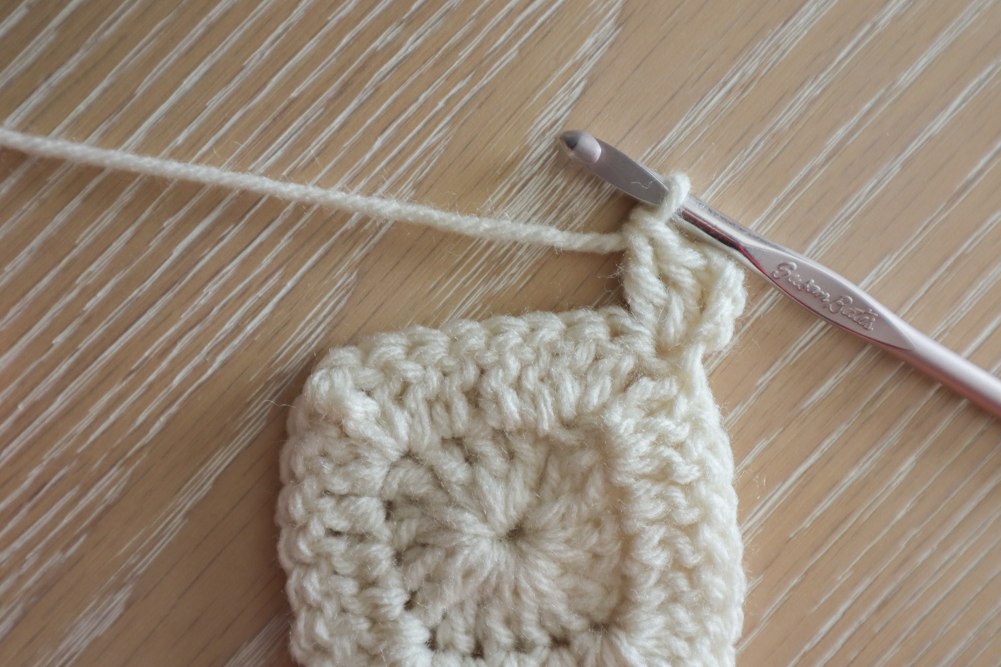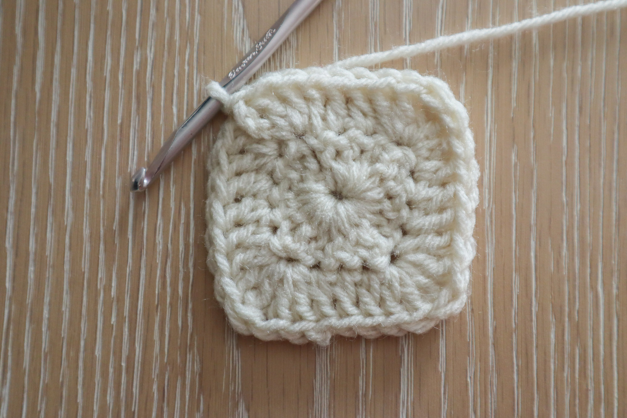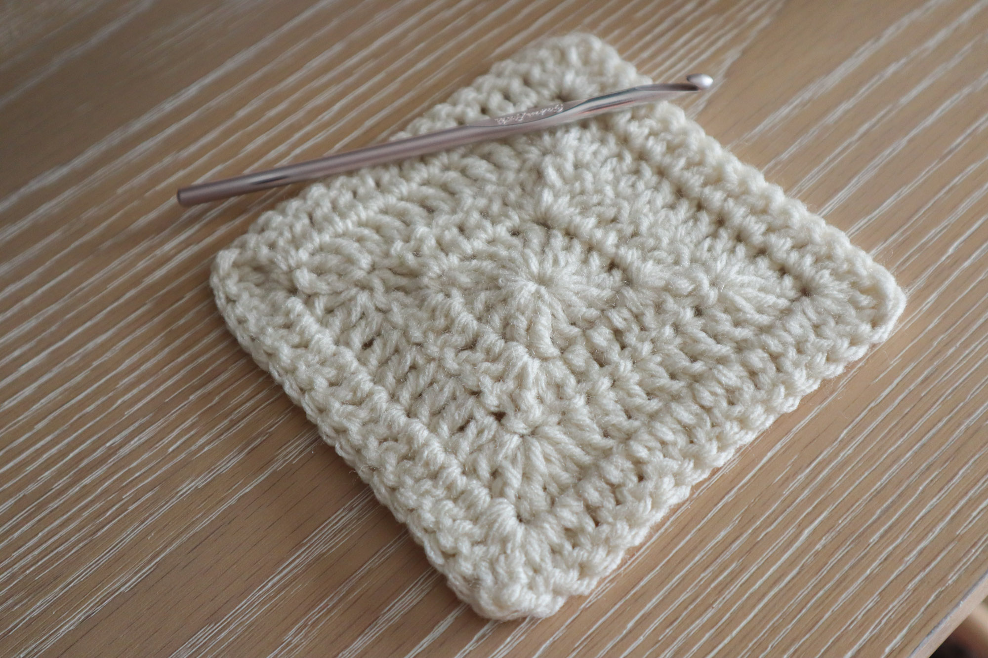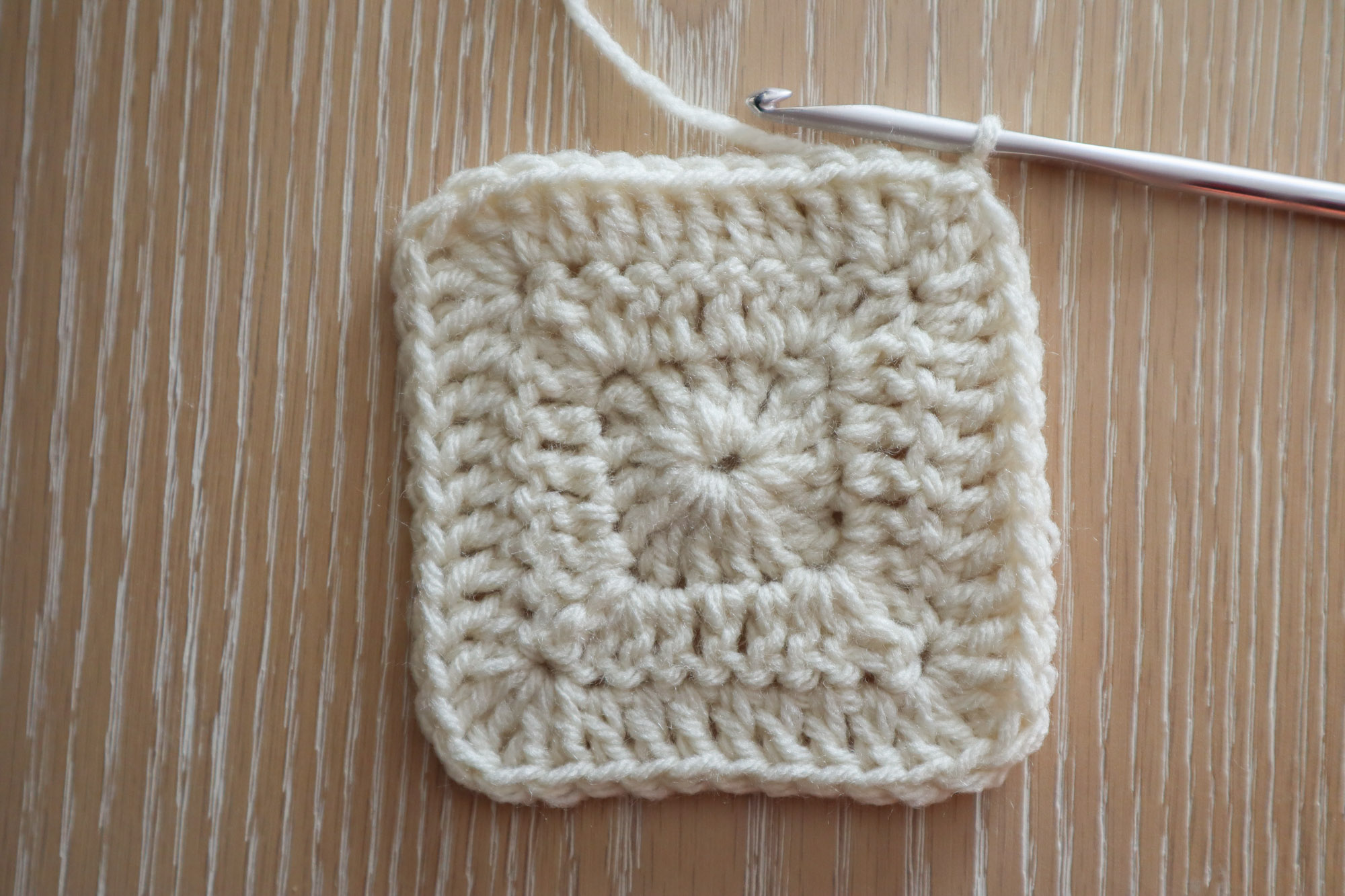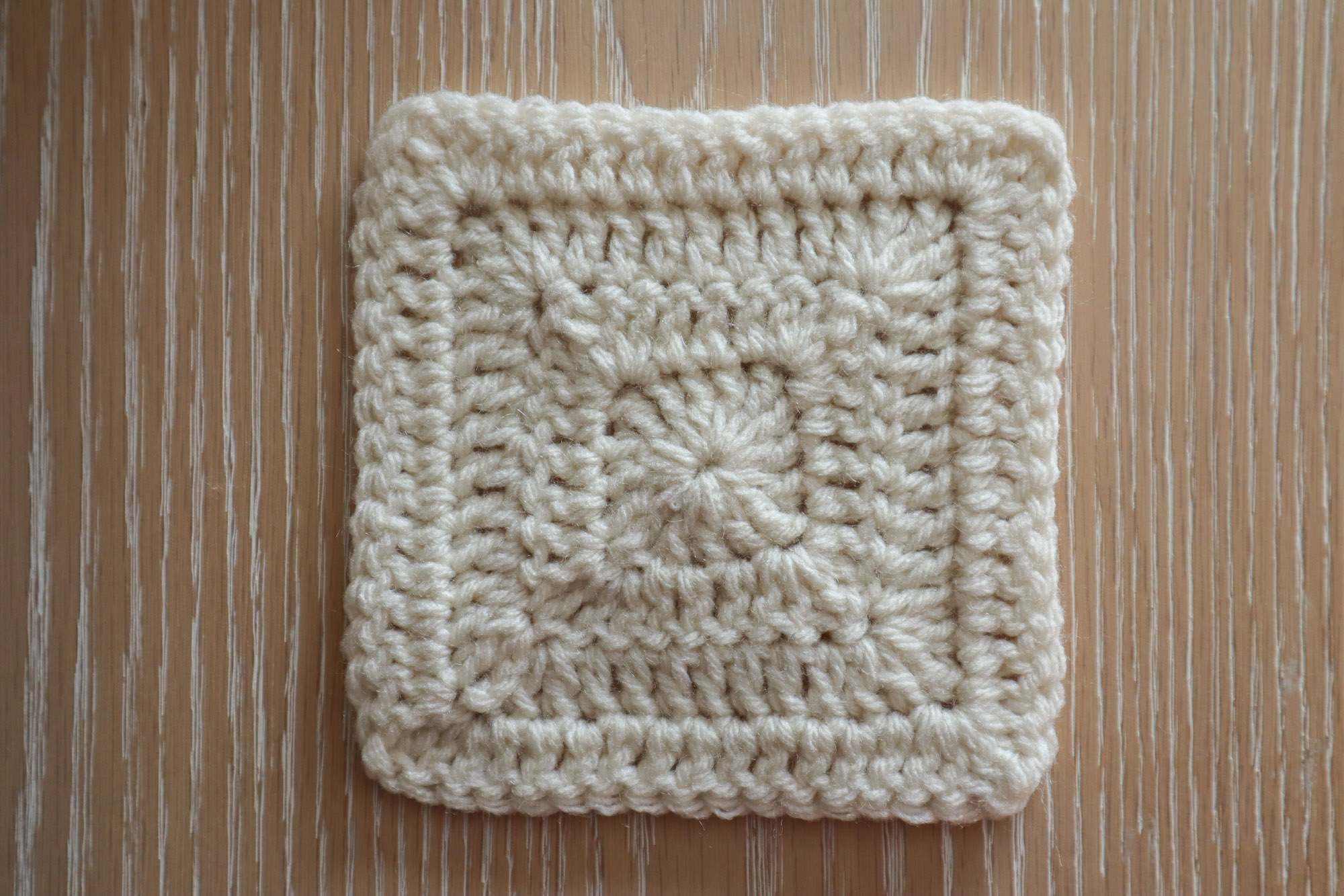 Fasten off and weave in ends. You can gently tug on the corners to define the square shape if needed.