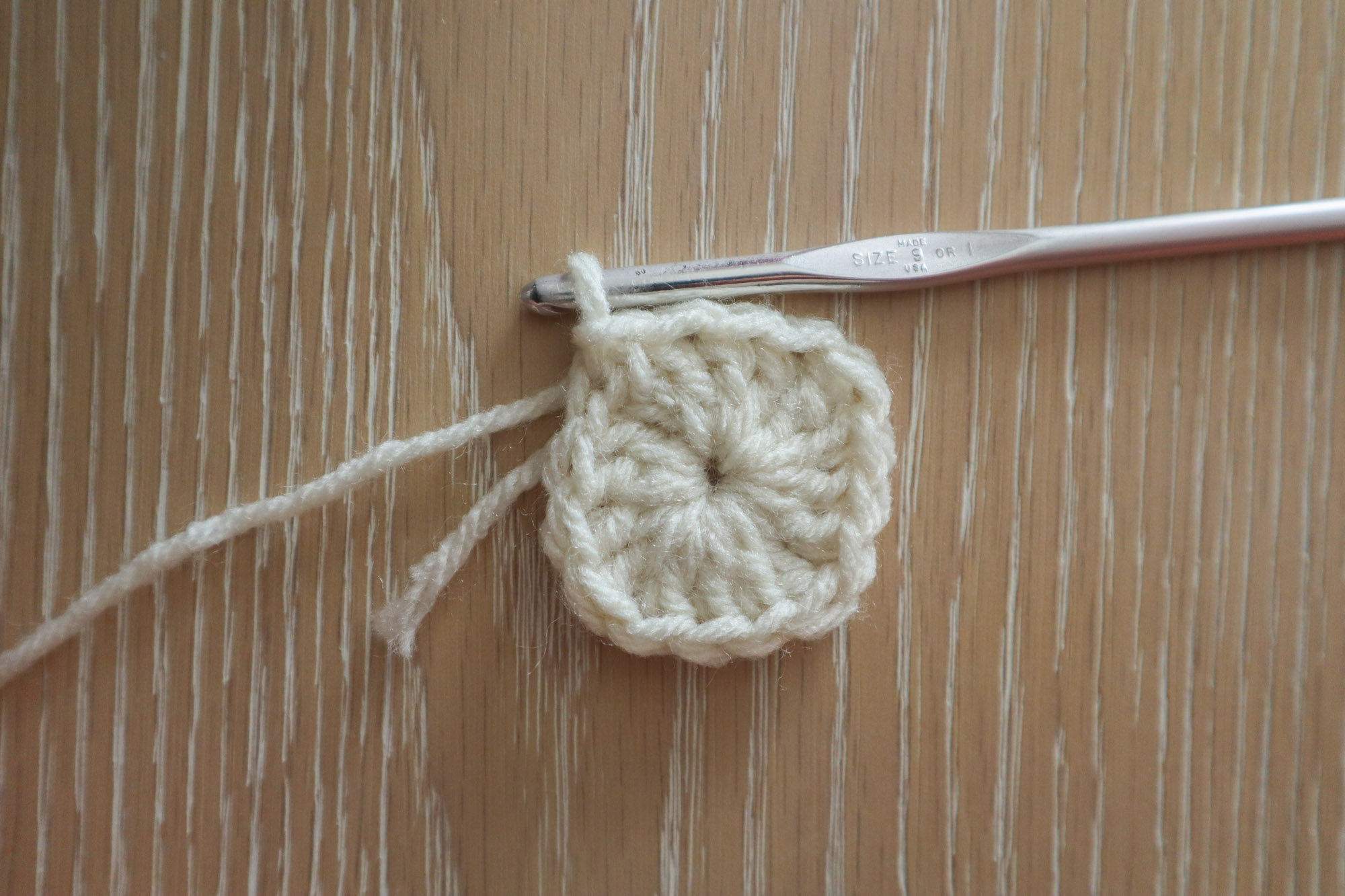 To begin, ch4 and sl st to the first ch to make a ch4 ring.