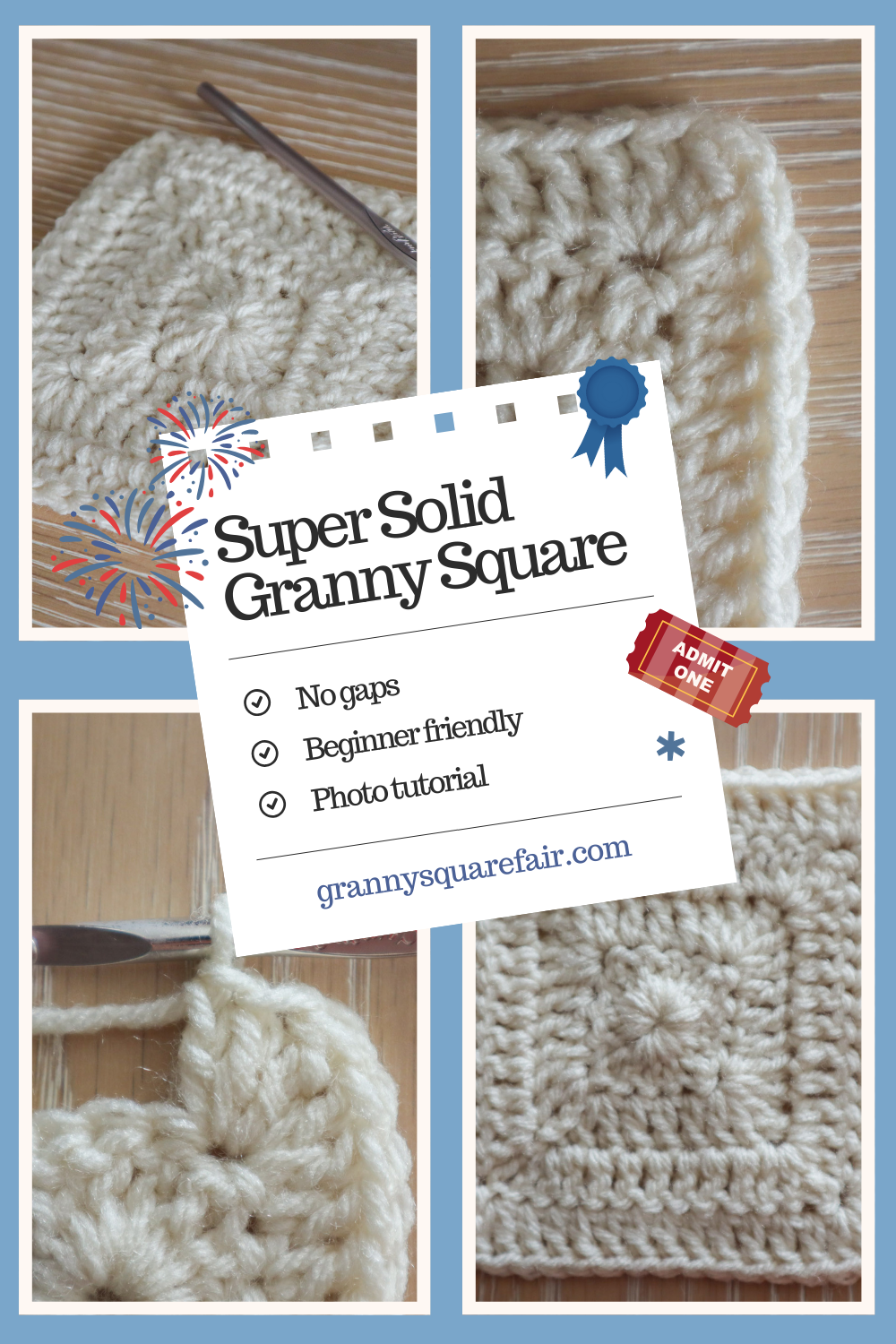 This version creates a beautifully dense, completely gap-free granny square — the “super solid” cousin of the traditional favorite!