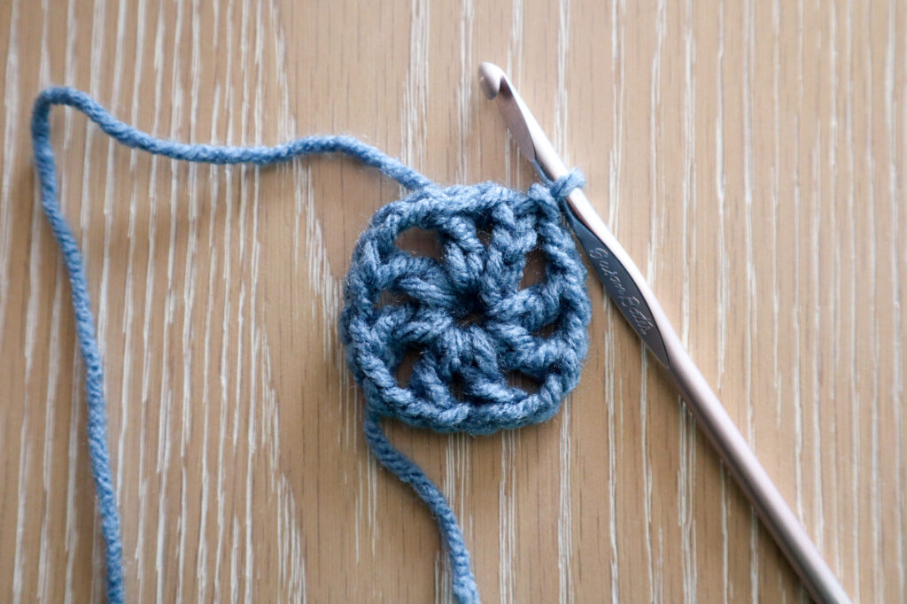 Gauge is up to you and your yarn and hook size! After 4 rounds, in my 4 weight yarn and 5.5mm hook, my square was 5″ across